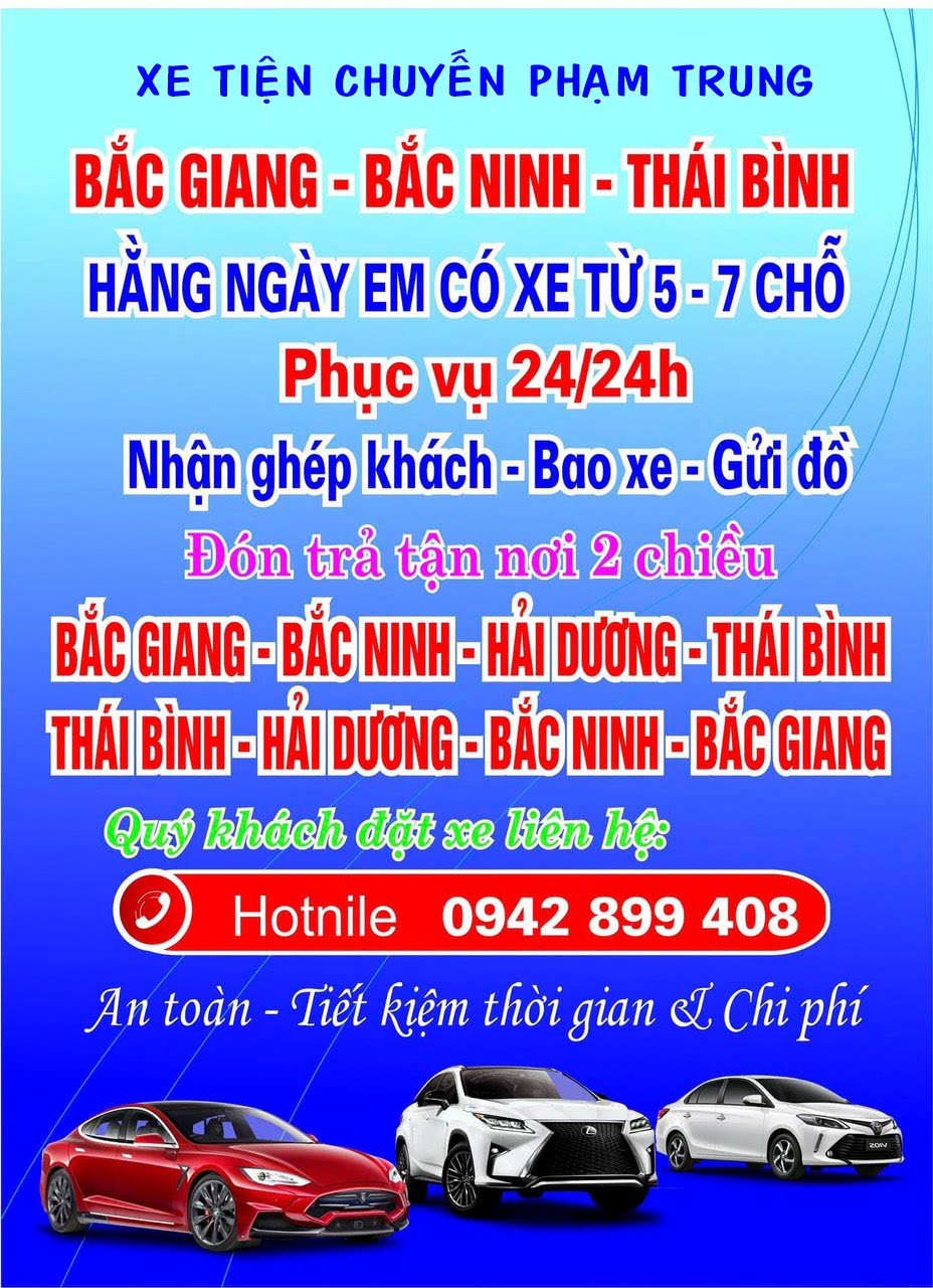 XE GHÉP MIỀN BẮC – cung cấp dịch vụ thuê xe tiện chuyến giá rẻ Hà Nội đi Thái Bình và Thái Bình về Hà Nội. Cam kết xe riêng đón trả tận nơi đúng giờ hẹn, xe 100% đời mới, thoáng mát, sạch sẽ, đủ tiện nghi hiện đại, phục vụ theo yêu cầu của hành khách.